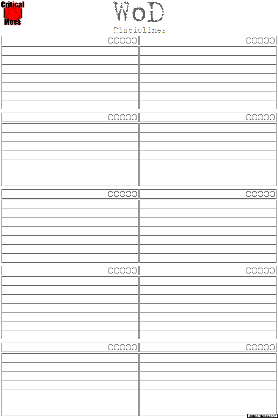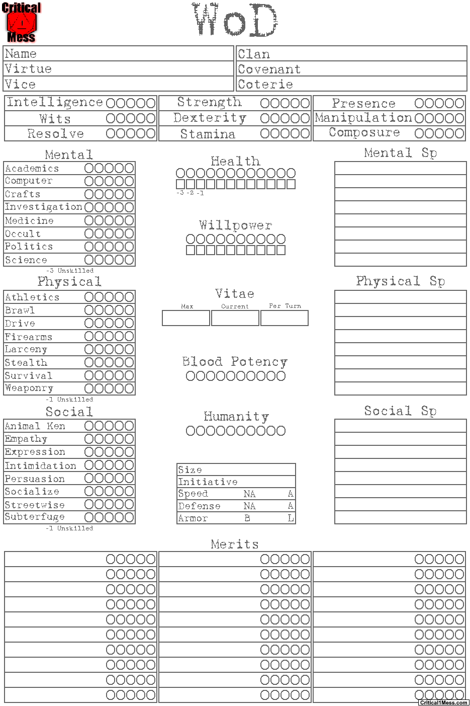 These Vampire: The Requiem character sheets are meant to be used in unison with my NWoD Custom Human Character Sheets. This is done by Replacing the first page and adding the last two pages to the rest of those sheets.