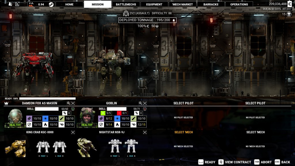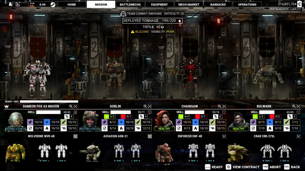 But being a mercenary is more than firing cannons; it’s keeping the lights on. You’ll spend as much time in menus as on the battlefield: negotiating contracts, deciding if salvage is worth more than cash, and repairing battered mechs after every job. It’s a loop that can feel repetitive, but also incredibly rewarding if you enjoy the logistics side of running a mercenary company. Which I very much do!