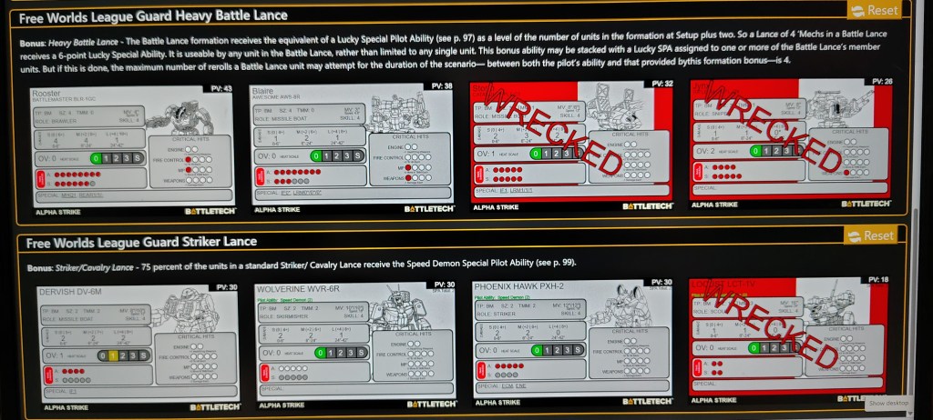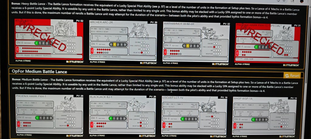 After many games, both small and large, I can say that the system scales well. Larger forces don’t bog the game down, which keeps Alpha Strike’s signature speed intact. Even the systems in place for in game bookkeeping, such as training/hiring hero pilots and mech rearmament/maintenance/repairs, are all very simple and light mechanically. But they all work very well for what they are. This system really is a game changer for solo players and those looking to play with friends, not against them.